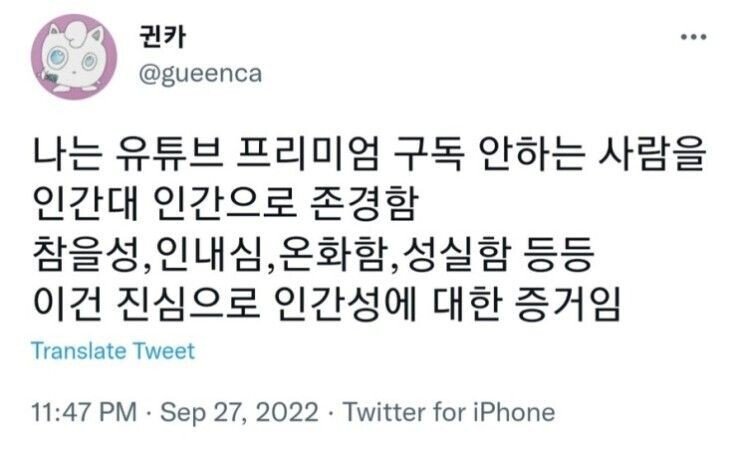 유튜브 프리미엄 구독 안하는 사람 특징 작성자 정보 브이슬롯쪽지보내기 메일보내기 자기소개 아이디로 검색 전체게시물쪽지보내기 메일보내기 자기소개 아이디로 검색 전체게시물 작성 작성일 2024.08.13 14:11 컨텐츠 정보 6,594 조회 12 댓글 목록 본문 관련자료 댓글 12 콜드부팅님의 댓글 콜드부팅쪽지보내기 메일보내기 자기소개 아이디로 검색 전체게시물쪽지보내기 메일보내기 자기소개 아이디로 검색 전체게시물 작성일 2024.08.13 16:08 나도 프리미엄 안쓰는데 웃긴건 온갖 OTT는 다 결제해서 보는데 유튭만 안함 나도 프리미엄 안쓰는데 웃긴건 온갖 OTT는 다 결제해서 보는데 유튭만 안함 소극분자님의 댓글 소극분자쪽지보내기 메일보내기 자기소개 아이디로 검색 전체게시물쪽지보내기 메일보내기 자기소개 아이디로 검색 전체게시물 작성일 2024.08.13 16:12 유튭프리미엄하면 삶의질이달라짐 유튭프리미엄하면 삶의질이달라짐 부선다리님의 댓글의 댓글 부선다리쪽지보내기 메일보내기 자기소개 아이디로 검색 전체게시물쪽지보내기 메일보내기 자기소개 아이디로 검색 전체게시물 작성일 2024.08.13 16:17 ㄹㅇ ㄹㅇ 켄지로님의 댓글의 댓글 켄지로쪽지보내기 메일보내기 자기소개 아이디로 검색 전체게시물쪽지보내기 메일보내기 자기소개 아이디로 검색 전체게시물 작성일 2024.08.13 16:22 인도, 아르헨티나로 이주한 후 삶이 달라졌다! ㅋㅋㅋㅋ 인도, 아르헨티나로 이주한 후 삶이 달라졌다! ㅋㅋㅋㅋ 빈센트님의 댓글 빈센트쪽지보내기 메일보내기 자기소개 아이디로 검색 전체게시물쪽지보내기 메일보내기 자기소개 아이디로 검색 전체게시물 작성일 2024.08.13 16:32 화질고정때문에 유튜브프리미엄이라도 리밴스드쓰다가 이럴거면 내가 왜 구독하고 있지 하면서 끊음 화질고정때문에 유튜브프리미엄이라도 리밴스드쓰다가 이럴거면 내가 왜 구독하고 있지 하면서 끊음 아이테스님의 댓글 아이테스쪽지보내기 메일보내기 자기소개 아이디로 검색 전체게시물쪽지보내기 메일보내기 자기소개 아이디로 검색 전체게시물 작성일 2024.08.13 16:47 프리미엄 백그라운드 재생때문에 도저히 해지 못하겠음 1박이나 무도 라디오처럼 틀어놓고 자는거 개꿀이라 프리미엄 백그라운드 재생때문에 도저히 해지 못하겠음 1박이나 무도 라디오처럼 틀어놓고 자는거 개꿀이라 메라스님의 댓글 메라스쪽지보내기 메일보내기 자기소개 아이디로 검색 전체게시물쪽지보내기 메일보내기 자기소개 아이디로 검색 전체게시물 작성일 2024.08.13 16:54 너무 비싸서 국적 옮김 너무 비싸서 국적 옮김 타카히로님의 댓글 타카히로쪽지보내기 메일보내기 자기소개 아이디로 검색 전체게시물쪽지보내기 메일보내기 자기소개 아이디로 검색 전체게시물 작성일 2024.08.13 16:56 역체감이 진짜 개오짐 가끔 다른 사람이 틀어주는 거 같이 볼 때 광고나오면 개답답함ㅋㅋㅋ 역체감이 진짜 개오짐 가끔 다른 사람이 틀어주는 거 같이 볼 때 광고나오면 개답답함ㅋㅋㅋ 광야님의 댓글 광야쪽지보내기 메일보내기 자기소개 아이디로 검색 전체게시물쪽지보내기 메일보내기 자기소개 아이디로 검색 전체게시물 작성일 2024.08.13 17:33 유튜브 광고 ㅈ같은게 예전에 skip할 수 있는 5초짜리 광고 하나만 나왔는데...요즘은 기본으로 15초짜리 광고도 많아지고 이후 바로 skip할 수 없는 5초짜리 광고로 연달아서 나오더라...이건 마치 '너 이래도 유튜브 프리미엄 안쓸꺼야??'라고 사람 시험하는것 같더라 유튜브 광고 ㅈ같은게 예전에 skip할 수 있는 5초짜리 광고 하나만 나왔는데...요즘은 기본으로 15초짜리 광고도 많아지고 이후 바로 skip할 수 없는 5초짜리 광고로 연달아서 나오더라...이건 마치 '너 이래도 유튜브 프리미엄 안쓸꺼야??'라고 사람 시험하는것 같더라 블랙체리님의 댓글 블랙체리쪽지보내기 메일보내기 자기소개 아이디로 검색 전체게시물쪽지보내기 메일보내기 자기소개 아이디로 검색 전체게시물 작성일 2024.08.13 17:40 맨날 프리미엄 쓰는데 지금 갱신할까말까 고민.. 맨날 프리미엄 쓰는데 지금 갱신할까말까 고민.. 래리디님의 댓글 래리디쪽지보내기 메일보내기 자기소개 아이디로 검색 전체게시물쪽지보내기 메일보내기 자기소개 아이디로 검색 전체게시물 작성일 2024.08.13 17:46 프리미엄 구독료 대신 주식을 프리미엄 구독료 대신 주식을 라시모스님의 댓글 라시모스쪽지보내기 메일보내기 자기소개 아이디로 검색 전체게시물쪽지보내기 메일보내기 자기소개 아이디로 검색 전체게시물 작성일 2024.08.13 18:07 밴스드 우왁굳 밴스드 우왁굳 로그인한 회원만 댓글 등록이 가능합니다. 목록