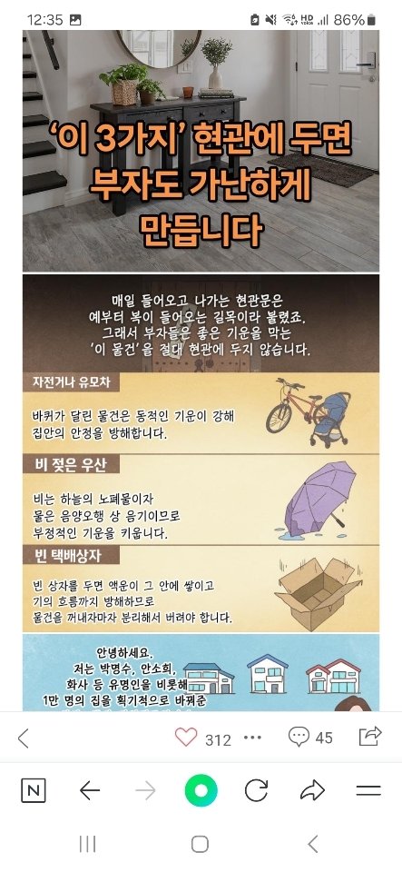 토모히로님의 댓글 토모히로쪽지보내기 메일보내기 자기소개 아이디로 검색 전체게시물쪽지보내기 메일보내기 자기소개 아이디로 검색 전체게시물 작성일 2024.08.18 20:51 저 3가지를 현관에 두기 때문에 가난하다 - X 집이 좁아 저 3가지를 현관에 둘 수 밖에 없다 - O 저 3가지를 현관에 두기 때문에 가난하다 - X 집이 좁아 저 3가지를 현관에 둘 수 밖에 없다 - O