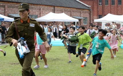 지난해 8월 13일 서울 서대문형무소에서 열린 '2023 서대문 독립축제'에서 초등학생 참가자들이 일본 순사복을 입은 진행 요원을 향해 물총을 쏘는 '독립군 전투체험'을 하고 있다. /뉴스1