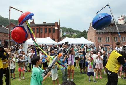 15일 오후 서울 서대문구 서대문형무소역사관을 찾은 초등학생 참가자들이 물총으로 박을 터뜨리는 프로그램에 참여하고 있다. 이날 프로그램은 일본 순사복을 입은 요원을 향해 물총을 쏘는 내용으로 기획됐으나 '반일 조장' 논란이 일면서 변경됐다. /뉴스1