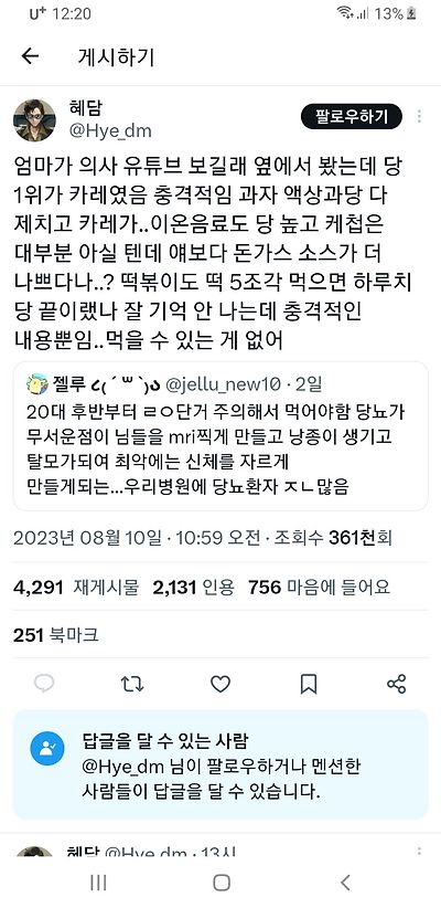 의외로 당뇨에 최악인 음식.twt 작성자 정보 브이슬롯쪽지보내기 메일보내기 자기소개 아이디로 검색 전체게시물쪽지보내기 메일보내기 자기소개 아이디로 검색 전체게시물 작성 작성일 2024.08.20 20:22 컨텐츠 정보 2,836 조회 14 댓글 목록 본문 이럴수가.. 카레,떡볶이에 미치는 사람 난데... 관련자료 댓글 14 보즈베일리님의 댓글 보즈베일리쪽지보내기 메일보내기 자기소개 아이디로 검색 전체게시물쪽지보내기 메일보내기 자기소개 아이디로 검색 전체게시물 작성일 2024.08.20 21:57 저런거보다 베스킨라빈스 아이스크림, 탕후루, 과일주스, 휘낭시에 에그타르트가 더 위험하지않을까요 저런거보다 베스킨라빈스 아이스크림, 탕후루, 과일주스, 휘낭시에 에그타르트가 더 위험하지않을까요 아스톤님의 댓글 아스톤쪽지보내기 메일보내기 자기소개 아이디로 검색 전체게시물쪽지보내기 메일보내기 자기소개 아이디로 검색 전체게시물 작성일 2024.08.20 22:05 삼시세끼 카레라이스만 먹은 듯.. 삼시세끼 카레라이스만 먹은 듯.. 광야님의 댓글 광야쪽지보내기 메일보내기 자기소개 아이디로 검색 전체게시물쪽지보내기 메일보내기 자기소개 아이디로 검색 전체게시물 작성일 2024.08.20 22:08 뭔 개소린지.. 얼마나 먹나 언제 먹냐 누가 먹냐따라 다른데.. 물도 많이 마시면 뒤지는데 물도 건강에 최악인가? 뭔 개소린지.. 얼마나 먹나 언제 먹냐 누가 먹냐따라 다른데.. 물도 많이 마시면 뒤지는데 물도 건강에 최악인가? 장기수님의 댓글 장기수쪽지보내기 메일보내기 자기소개 아이디로 검색 전체게시물쪽지보내기 메일보내기 자기소개 아이디로 검색 전체게시물 작성일 2024.08.20 22:13 건강한 음식을 먹는거보다 먹자마자 가볍게 30-40분 산책하는 습관만들어도 혈당이 치솟진 않는다고 하더군요. 그거보고 역시 건강한 생활습관이 건강한 음식보다 더 중요한걸 깨달음. 건강한 음식을 먹는거보다 먹자마자 가볍게 30-40분 산책하는 습관만들어도 혈당이 치솟진 않는다고 하더군요. 그거보고 역시 건강한 생활습관이 건강한 음식보다 더 중요한걸 깨달음. 후두애리느님의 댓글 후두애리느쪽지보내기 메일보내기 자기소개 아이디로 검색 전체게시물쪽지보내기 메일보내기 자기소개 아이디로 검색 전체게시물 작성일 2024.08.20 22:15 더 라는건 없는거 같아요. 하나 하고 하나 안하면 의미 없으니까요 더 라는건 없는거 같아요. 하나 하고 하나 안하면 의미 없으니까요 르지로이나님의 댓글 르지로이나쪽지보내기 메일보내기 자기소개 아이디로 검색 전체게시물쪽지보내기 메일보내기 자기소개 아이디로 검색 전체게시물 작성일 2024.08.20 22:18 먹고 운동은 최소 1-2시간 이따가 하는게 정석 아닌가요? 밥 먹자마자 일하면 좋지도 않듯이 먹고 운동은 최소 1-2시간 이따가 하는게 정석 아닌가요? 밥 먹자마자 일하면 좋지도 않듯이 로지디브님의 댓글의 댓글 로지디브쪽지보내기 메일보내기 자기소개 아이디로 검색 전체게시물쪽지보내기 메일보내기 자기소개 아이디로 검색 전체게시물 작성일 2024.08.20 22:20 혈당 조절엔 먹고 나서 바로 땀 날 정도의 부하로 걷는게 좋습니다. 40분~1시간 정도 추천하더라구요. 혈당 조절엔 먹고 나서 바로 땀 날 정도의 부하로 걷는게 좋습니다. 40분~1시간 정도 추천하더라구요. 하이필스님의 댓글 하이필스쪽지보내기 메일보내기 자기소개 아이디로 검색 전체게시물쪽지보내기 메일보내기 자기소개 아이디로 검색 전체게시물 작성일 2024.08.20 22:36 당뇨에 근데 팔을 왜 자름??? 발이면 몰라도... 당뇨에 근데 팔을 왜 자름??? 발이면 몰라도... 한숨에휴님의 댓글의 댓글 한숨에휴쪽지보내기 메일보내기 자기소개 아이디로 검색 전체게시물쪽지보내기 메일보내기 자기소개 아이디로 검색 전체게시물 작성일 2024.08.20 22:44 발이던 팔이던 심하면 괴사되어 자르는데 보통은 심장에서 먼 다리가 확율이 높은거고 손은 그나마 낮은정도. 72 럭키포인트 당첨! 발이던 팔이던 심하면 괴사되어 자르는데 보통은 심장에서 먼 다리가 확율이 높은거고 손은 그나마 낮은정도. 타키투스님의 댓글 타키투스쪽지보내기 메일보내기 자기소개 아이디로 검색 전체게시물쪽지보내기 메일보내기 자기소개 아이디로 검색 전체게시물 작성일 2024.08.20 22:49 실제로 탄수화물 함량에서 식이섬유를 제외한 것을 다 당이라고(당류 +당질) 보시면 됩니다. 오뚜기카레는 백그람당 15그람이 다 당인거죠 15그람 다 섭취하면 혈당 45정도 올라갑니다 거기에 밥이나 감자 먹음 더 올라가는거죠 순탄수양만큼요 실제로 탄수화물 함량에서 식이섬유를 제외한 것을 다 당이라고(당류 +당질) 보시면 됩니다. 오뚜기카레는 백그람당 15그람이 다 당인거죠 15그람 다 섭취하면 혈당 45정도 올라갑니다 거기에 밥이나 감자 먹음 더 올라가는거죠 순탄수양만큼요 말포이님의 댓글 말포이쪽지보내기 메일보내기 자기소개 아이디로 검색 전체게시물쪽지보내기 메일보내기 자기소개 아이디로 검색 전체게시물 작성일 2024.08.20 22:50 거기 들어가는 당근 양파 감자에 밥 비벼 먹잔아요 이미 쌀밥 자체가 최악의 음식임 거기 들어가는 당근 양파 감자에 밥 비벼 먹잔